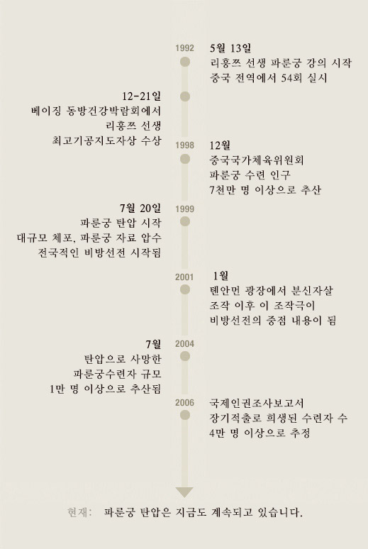 1999년 중국공산당은 파룬따파(法輪大法)를 탄압하기 시작했습니다. 파룬따파는 진(眞)•선(善)•인(忍), 즉 참되고, 선하며, 참음을 기본원칙으로 삼는 명상수련입니다 (파룬따파란 무엇인가?). 공산당은 중국 국내에서 파룬따파 수련자들을 끊임없이 박해하고 있을 뿐 아니라 해외에까지 그 범위를 확대하고 있습니다. 션윈예술단도 탄압의 대상이 되었습니다.